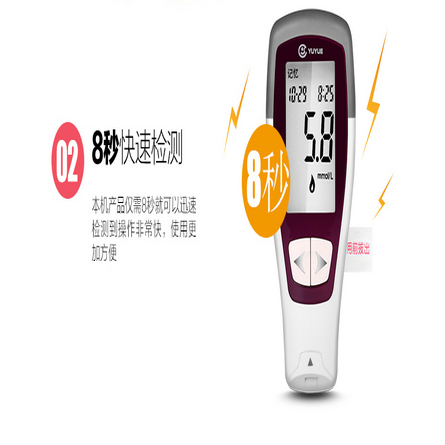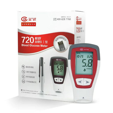 【品牌】 型号:鱼跃720悦好型 【度量单位】 tmmol/L 【检测时间】 8S 【记忆组数】 250组。 【显示屏】 LCD。 【生产企业】 企业名称:江苏鱼跃医用仪器
